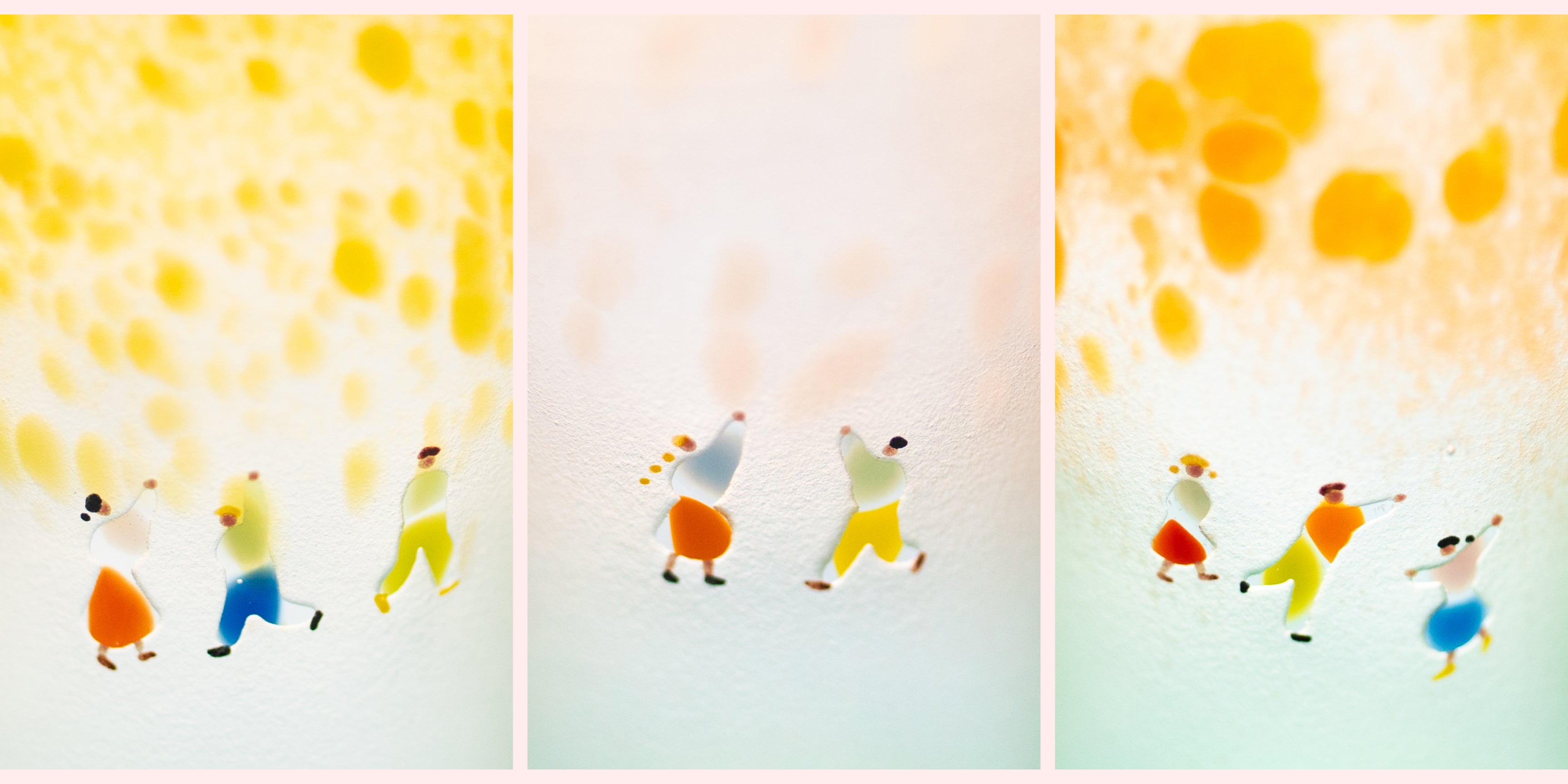 In those moments, I let the unexpected patterns inspire me. I start imagining the figures: “What kind of person should this become?” or “What story is emerging here?” Depending on how the colors are arranged, I’ll think, “This could be a family of three,” “These two might be a couple,” or “Maybe these are friends meeting up.” It’s incredibly enjoyable to create and imagine the relationships between the people in the scene.