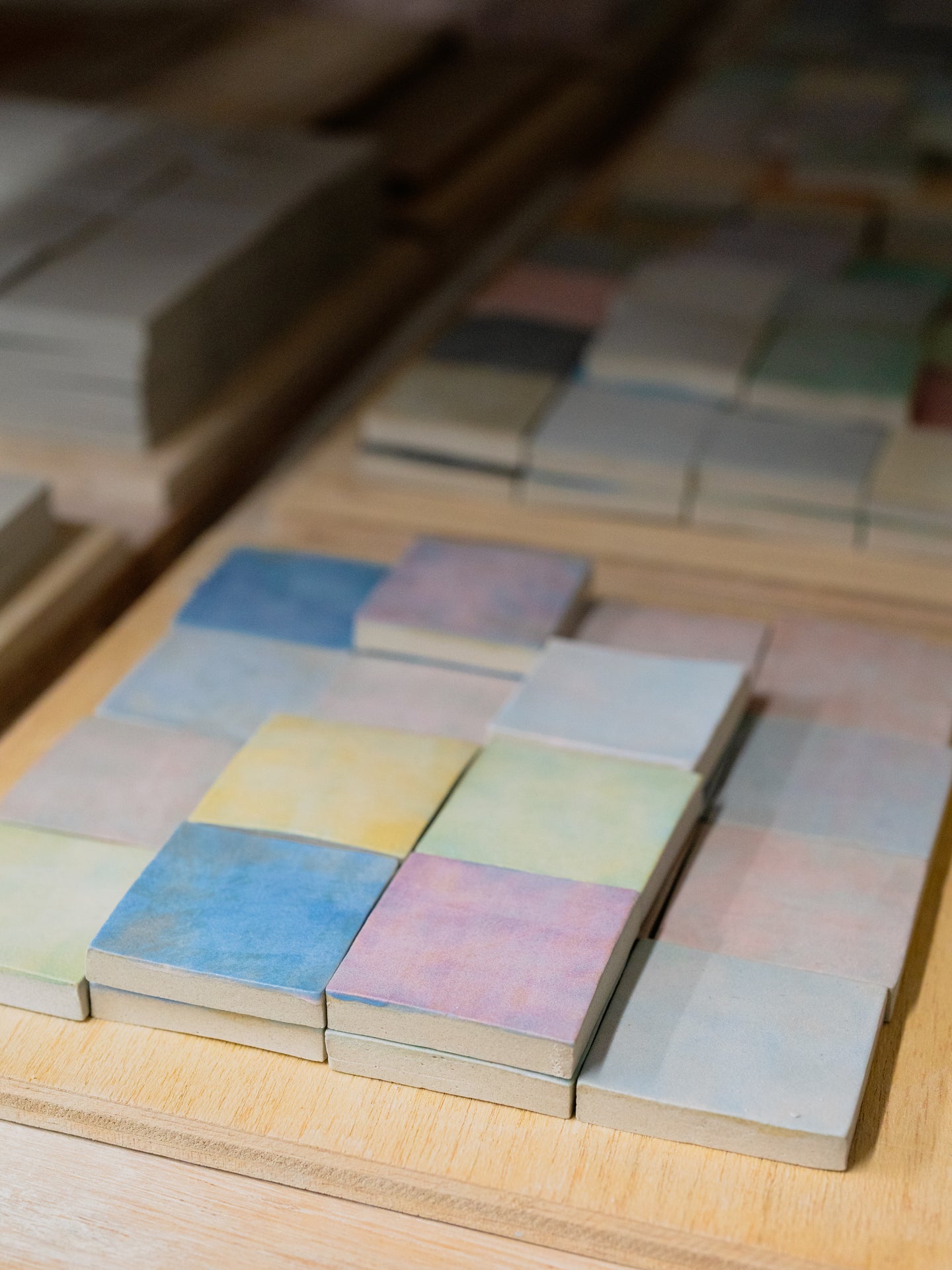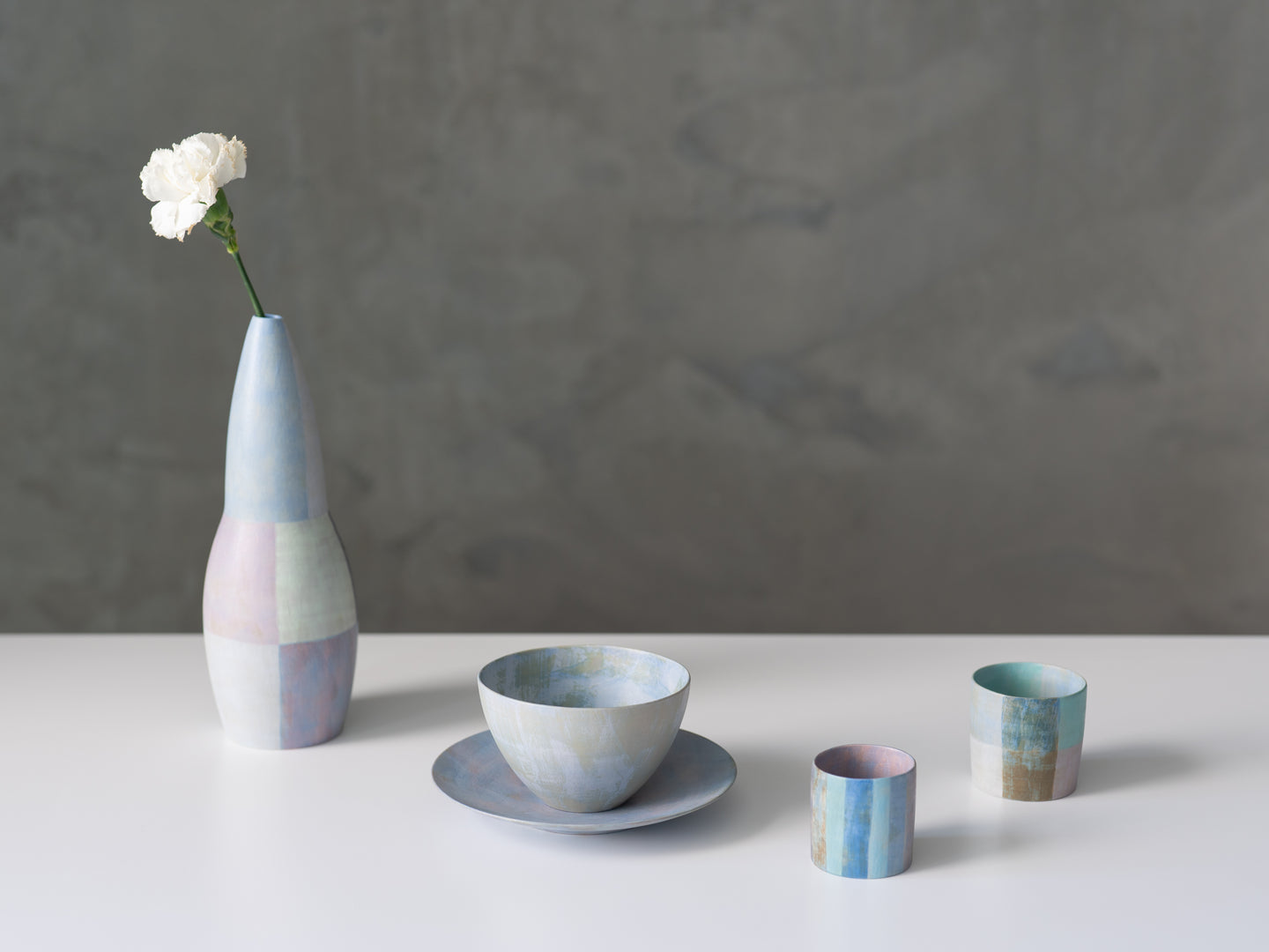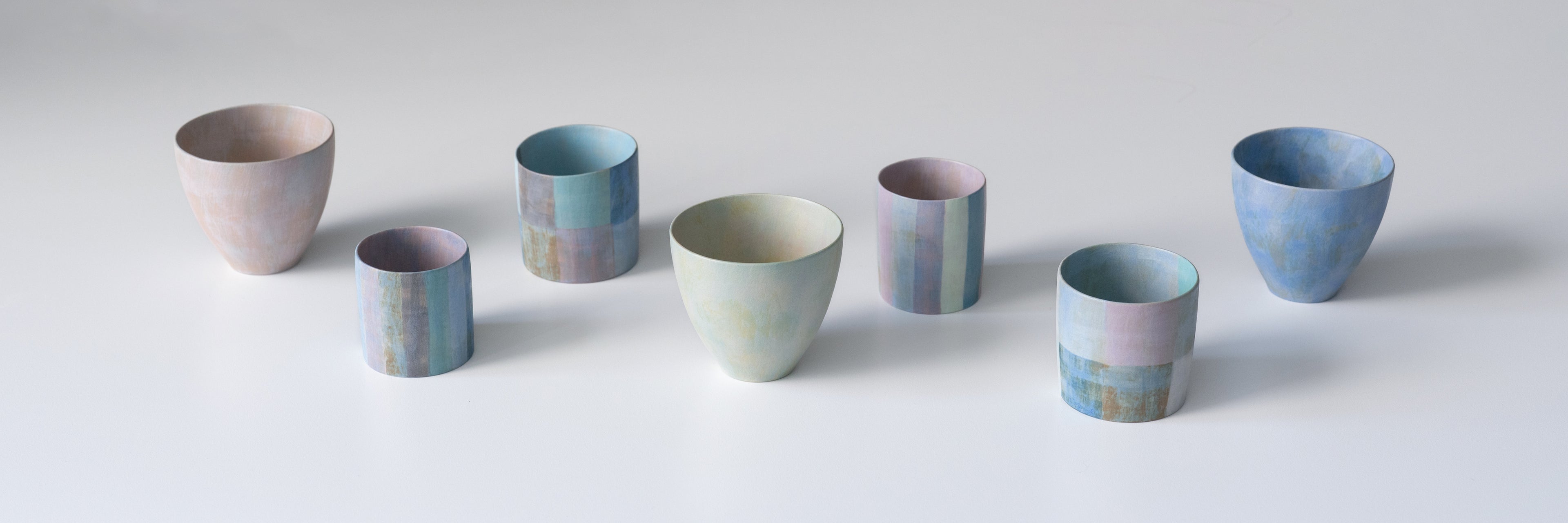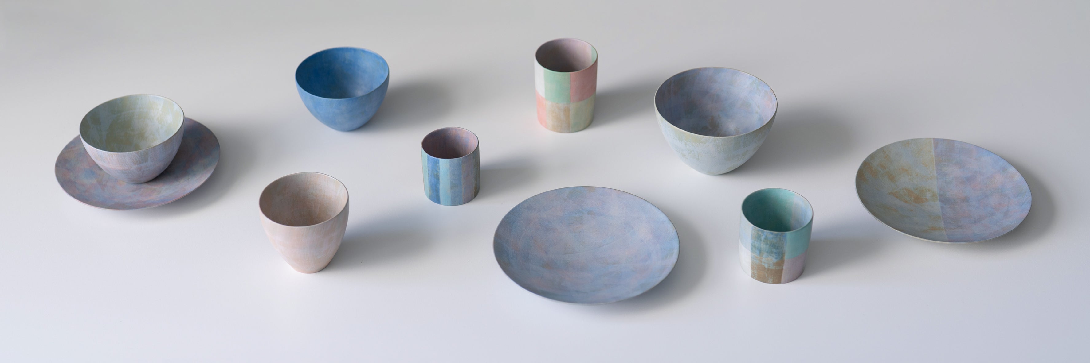 In terms of color and pattern, over the past three years or so, I’ve been experimenting with the possibilities of slip and glaze as mediums - creating ideas one after another as they come to me. Rather than inventing everything from scratch, many of my works are developed and expanded based on results from past tests and previous pieces.