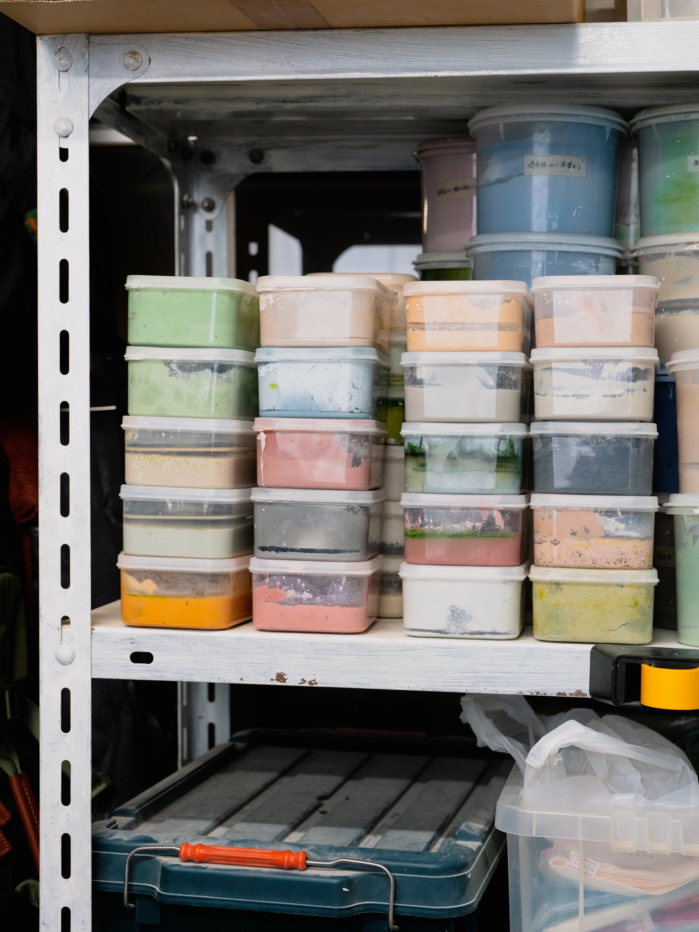 My use of colored slip for surface treatment has also remained consistent since my university days. Initially, I wanted to move away from the conventional textures and colors associated with traditional pottery - what we often call “yakimono-ness.” So I layered multiple colors of slip using a sponge, then scraped the surface smooth to eliminate any texture, creating surfaces where the material itself was ambiguous - intentionally hiding what it’s made of.