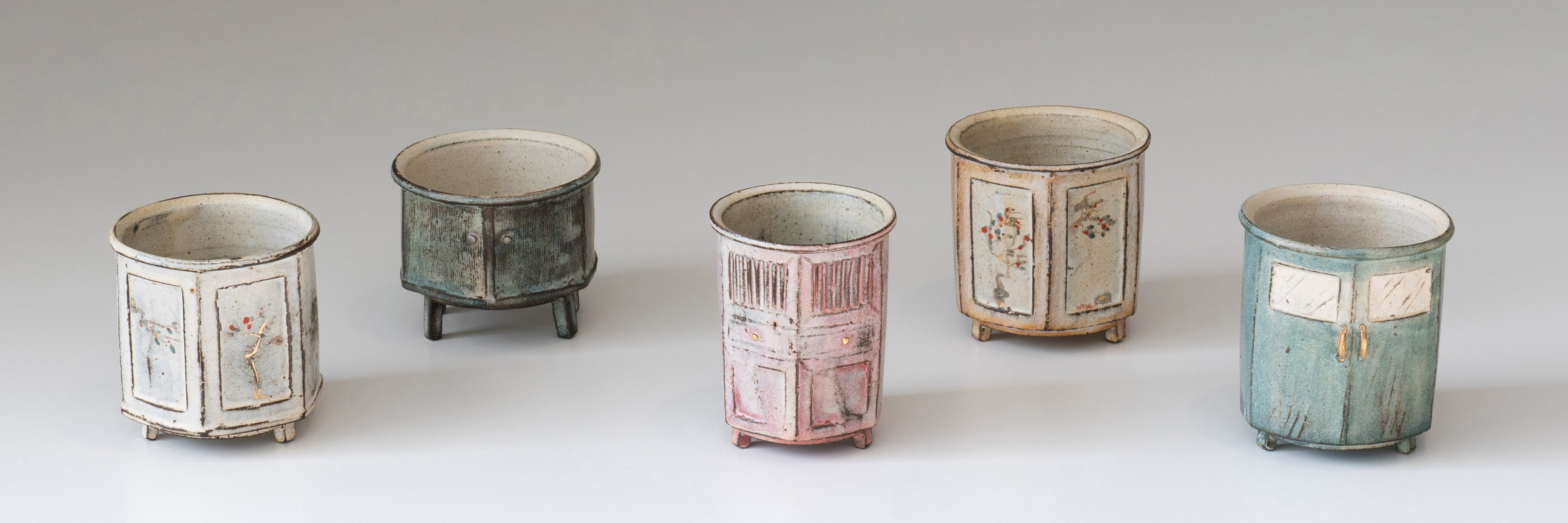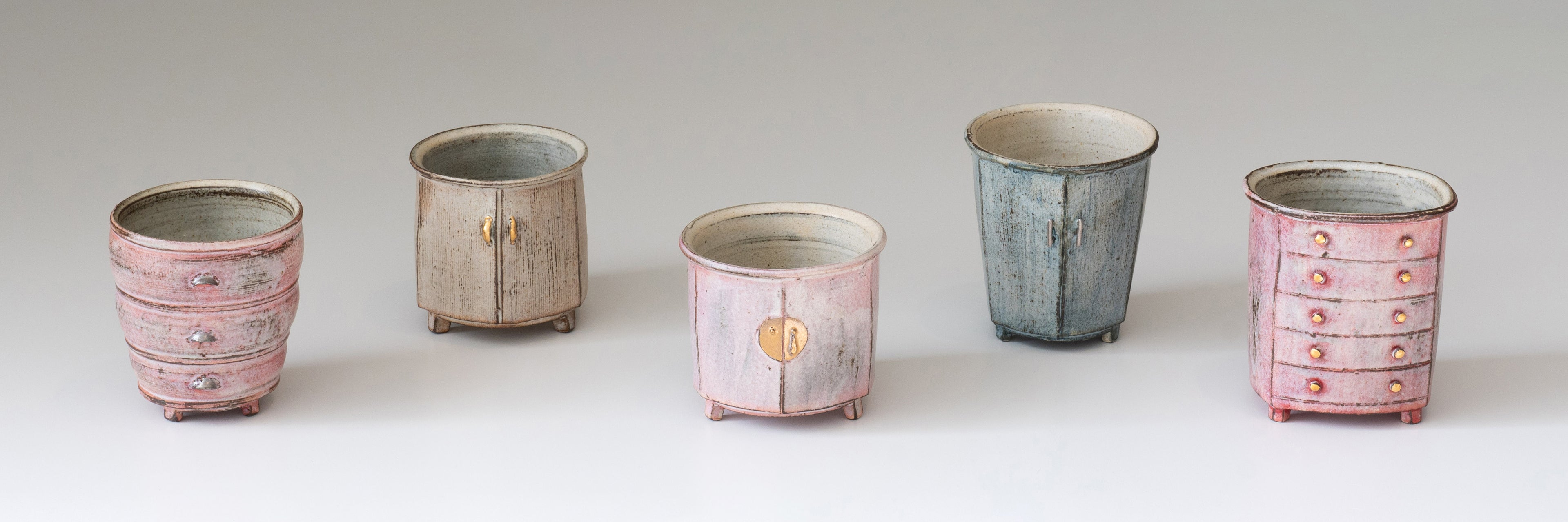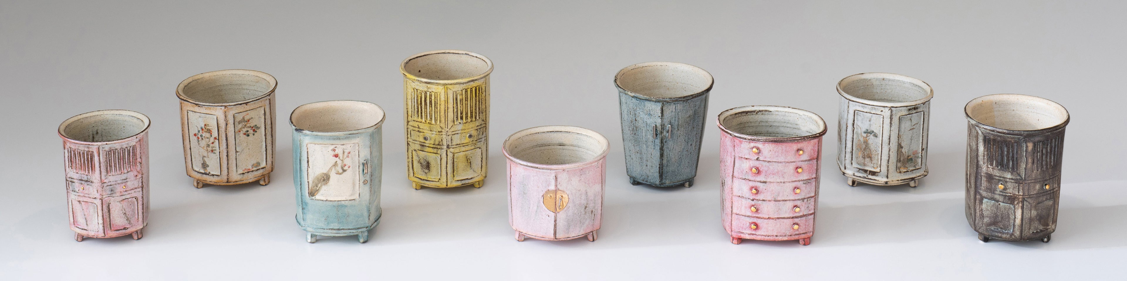 The concept of designing cups in the shape of cabinets gives each piece a unique story. How did this series come about? Could you share the inspiration and creative process behind it?