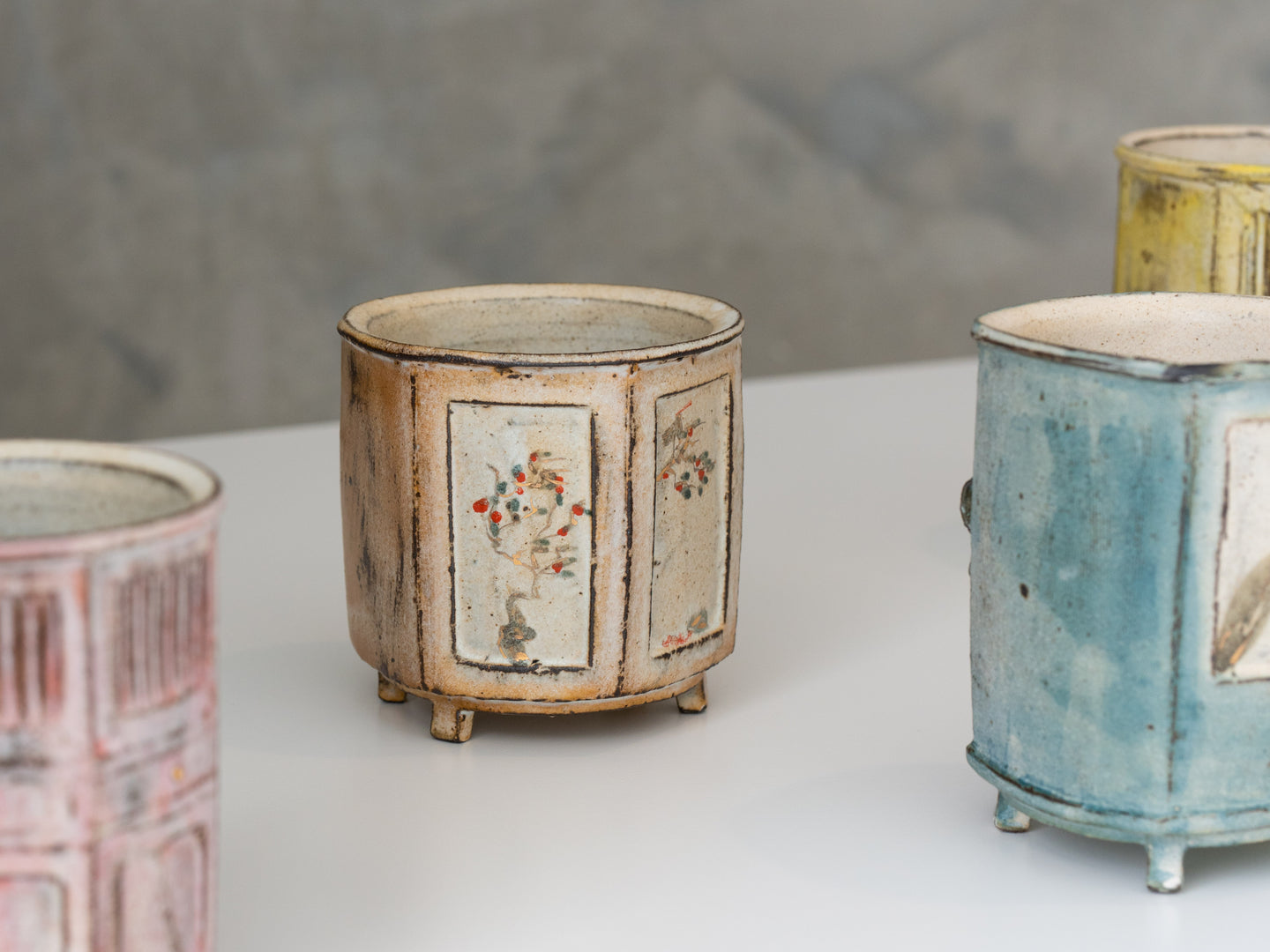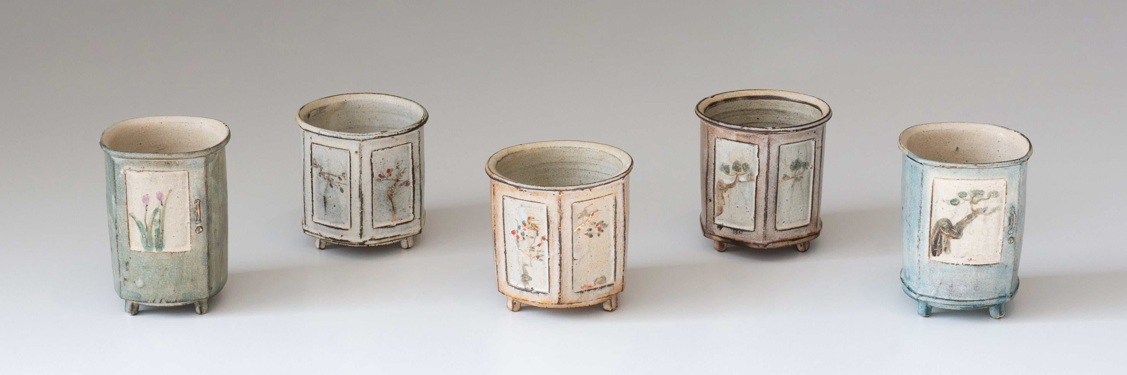 As I worked on the series, I experimented with different forming techniques and glaze combinations, aiming to give each piece a unique, story-filled character. I also focused on fine details, ensuring that every cup could stand as a beautiful work of art. Each piece in the cabinet series reflects my thoughts on time, my nostalgia for the past, and my hope to create new connections through these reimagined memories.