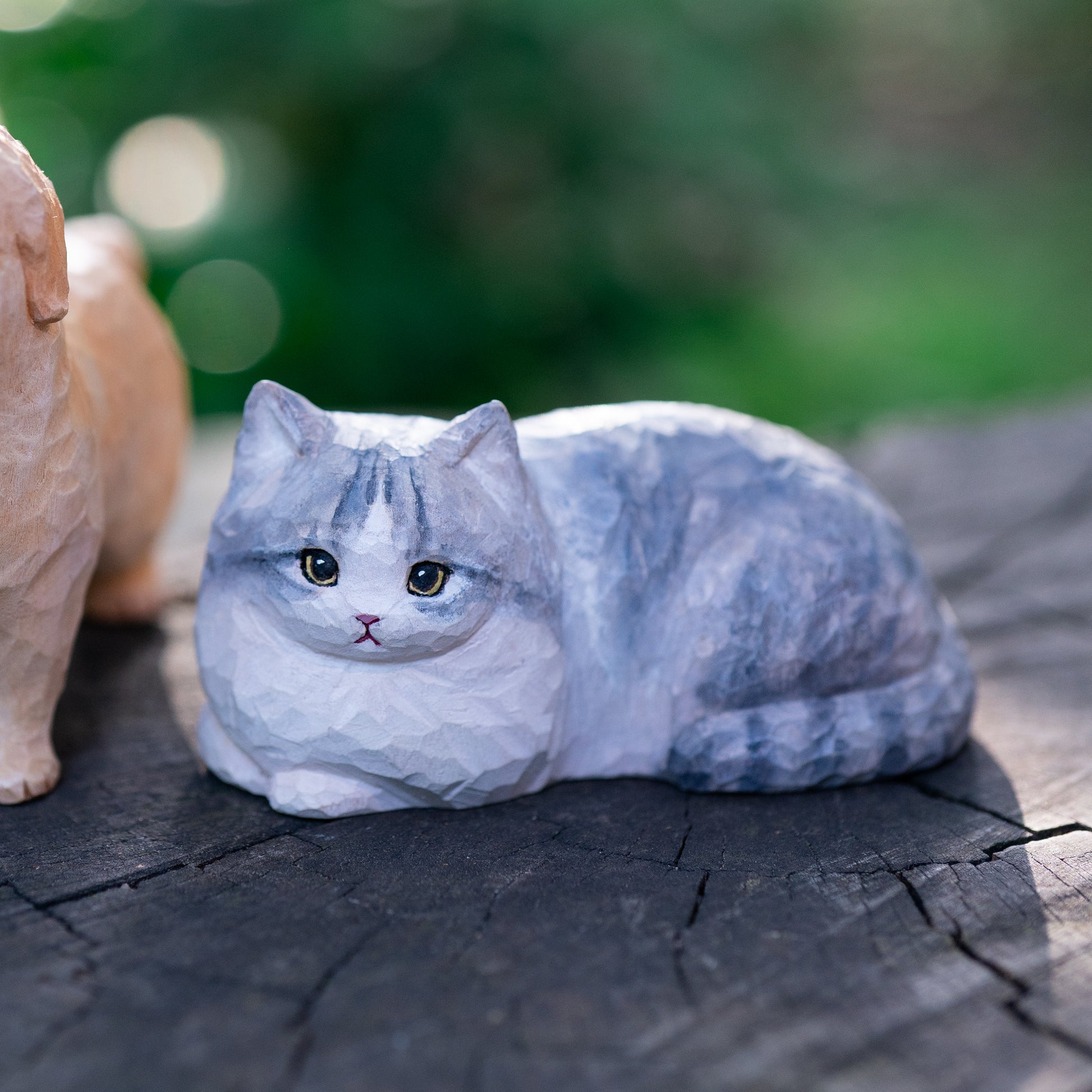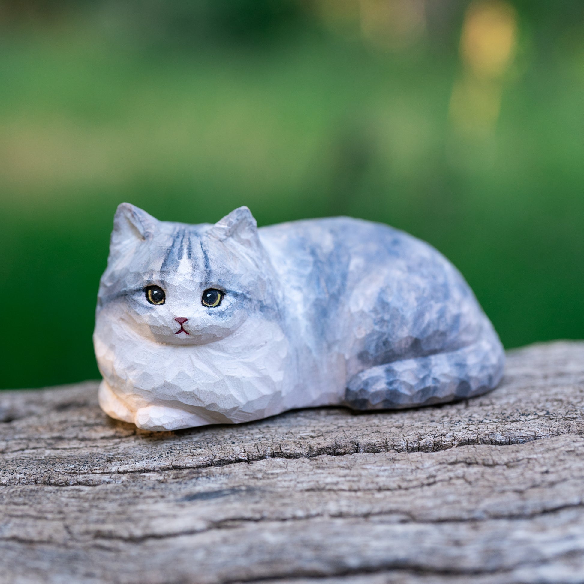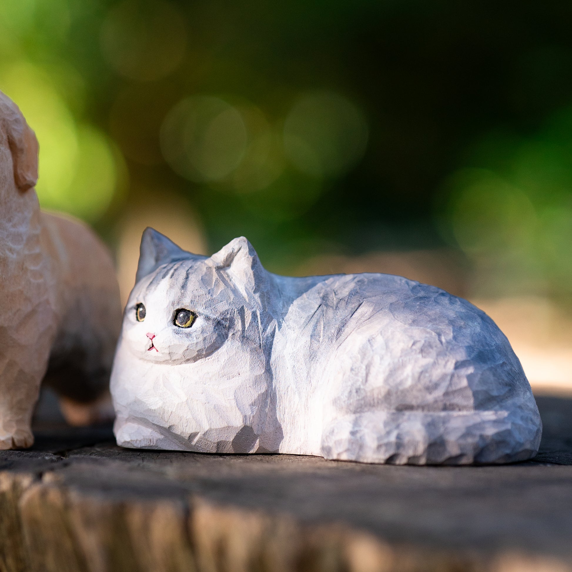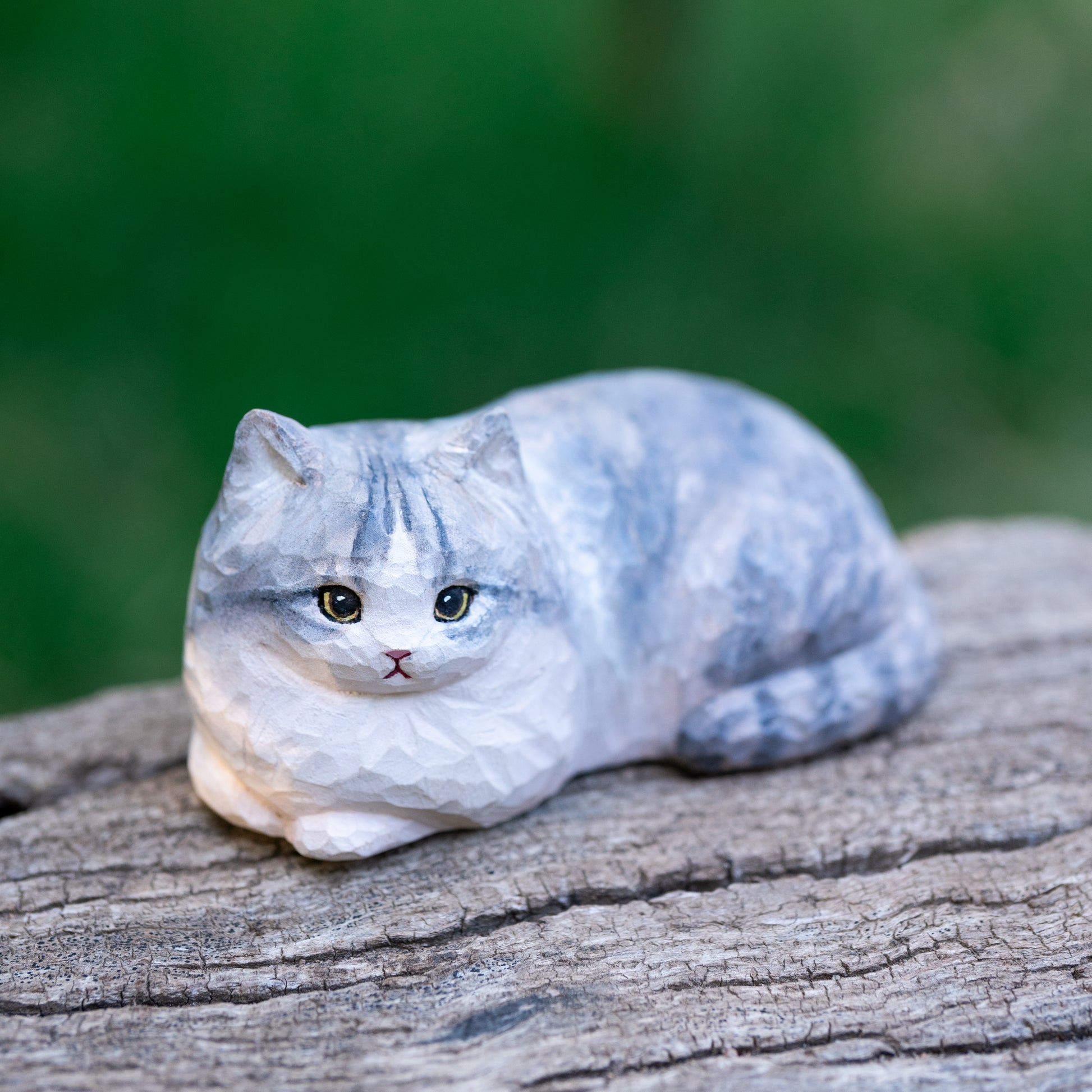 Lovingly carved from wood, this charming sculpture captures a gentle cat resting peacefully. With its little paws tucked in and tail softly wrapped around, it radiates a sense of quiet warmth - like a tender companion curled up beside you, simply keeping you company.