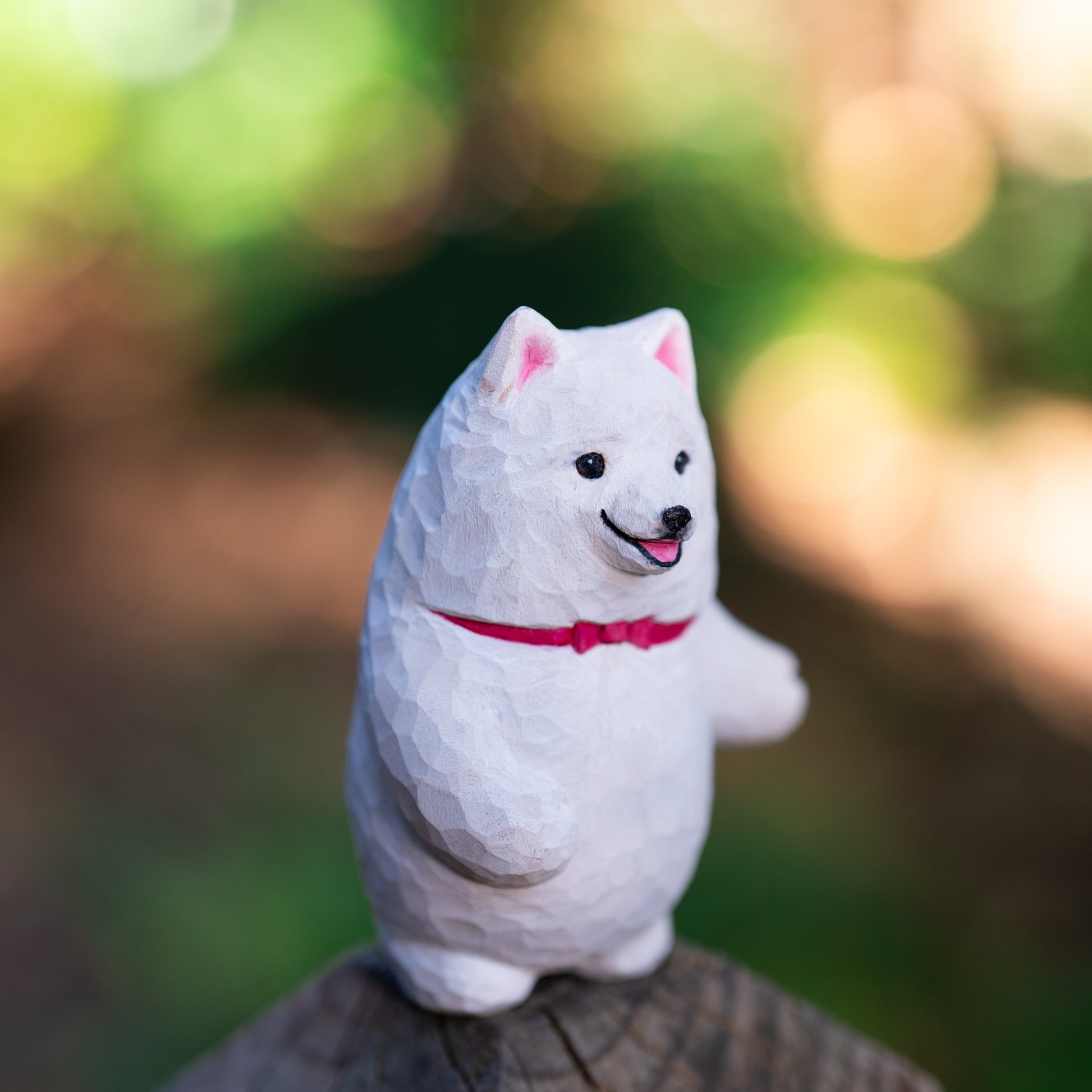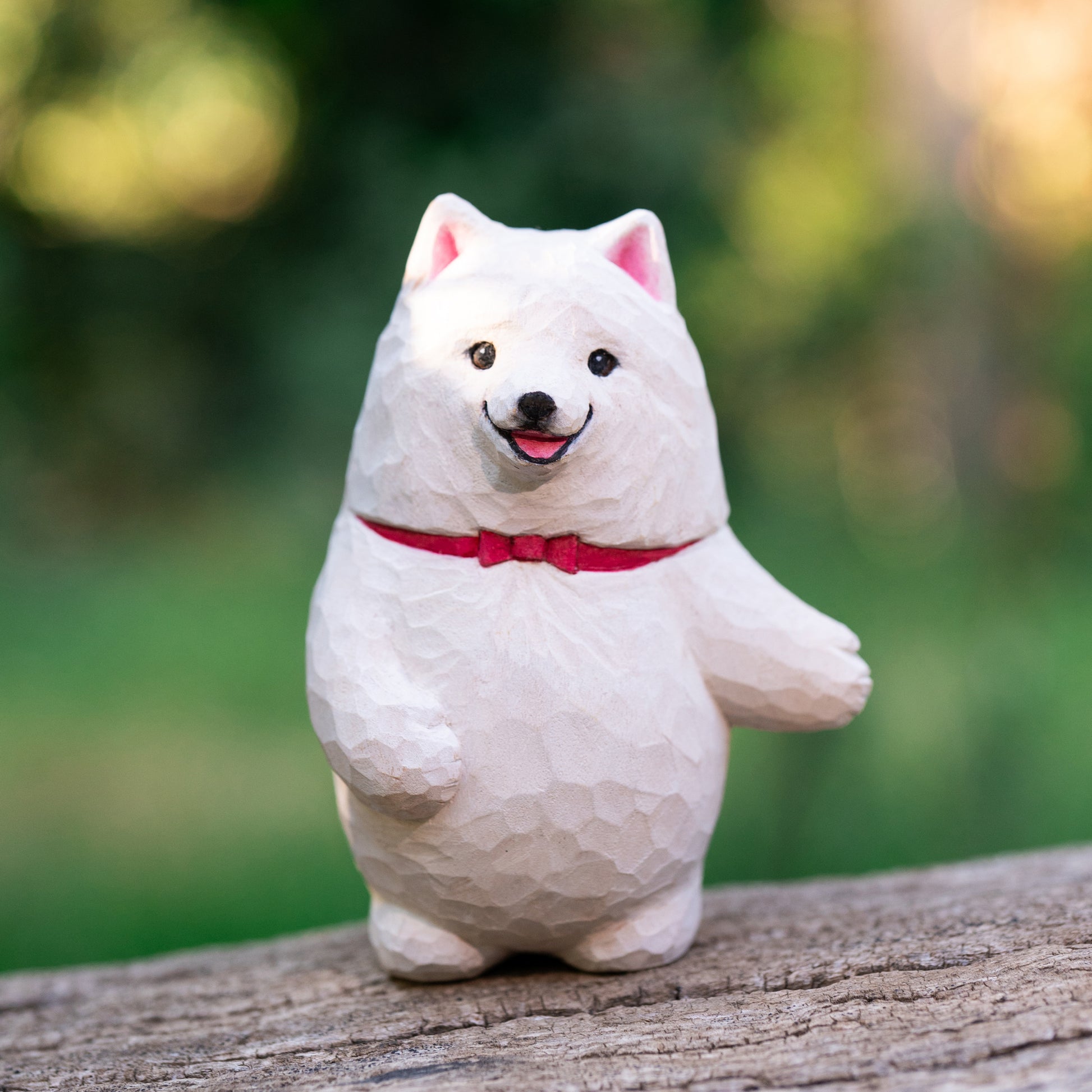 Every detail is shaped by hand with care and patience, preserving the natural textures and warmth of the wood. Subtle layers of watercolor are applied to bring the expression to life, giving the piece a sense of quiet presence and soul.