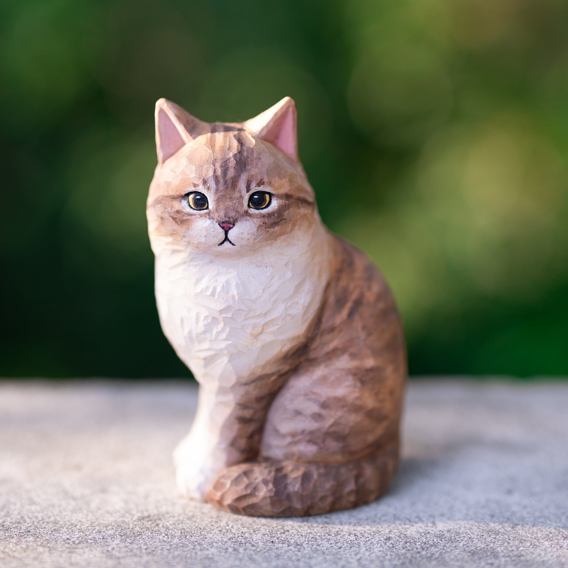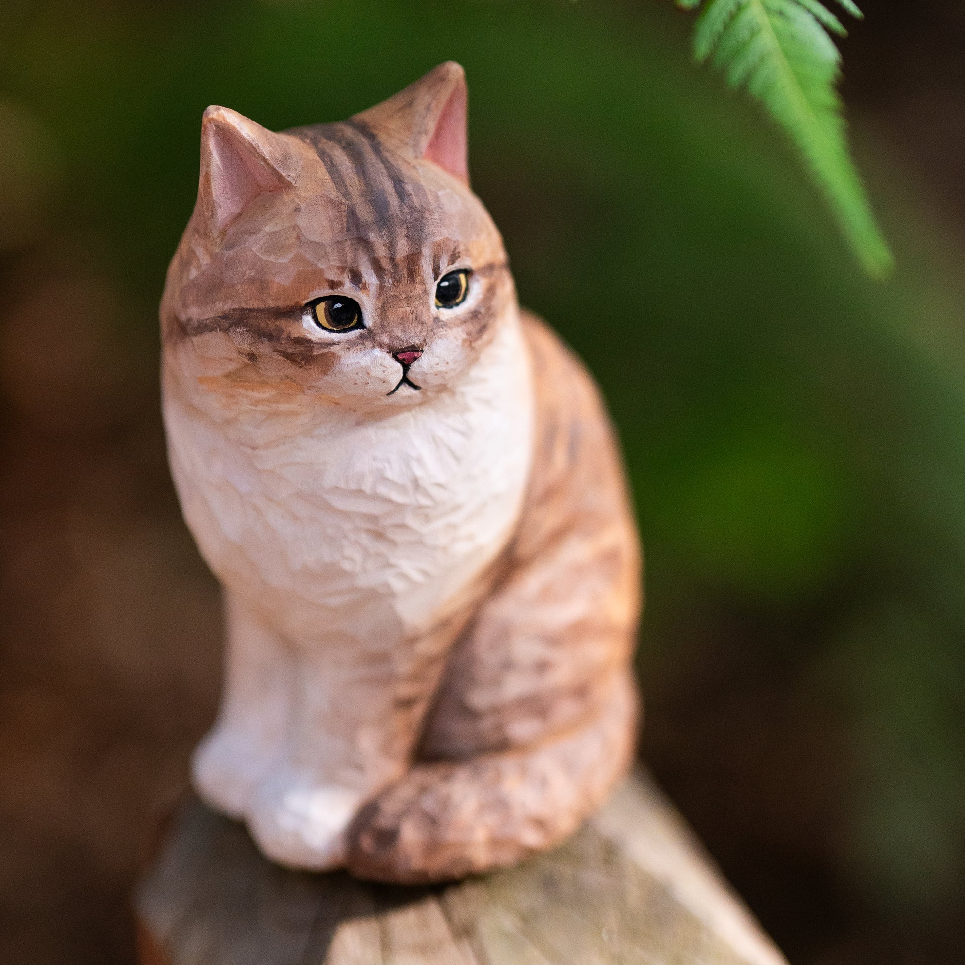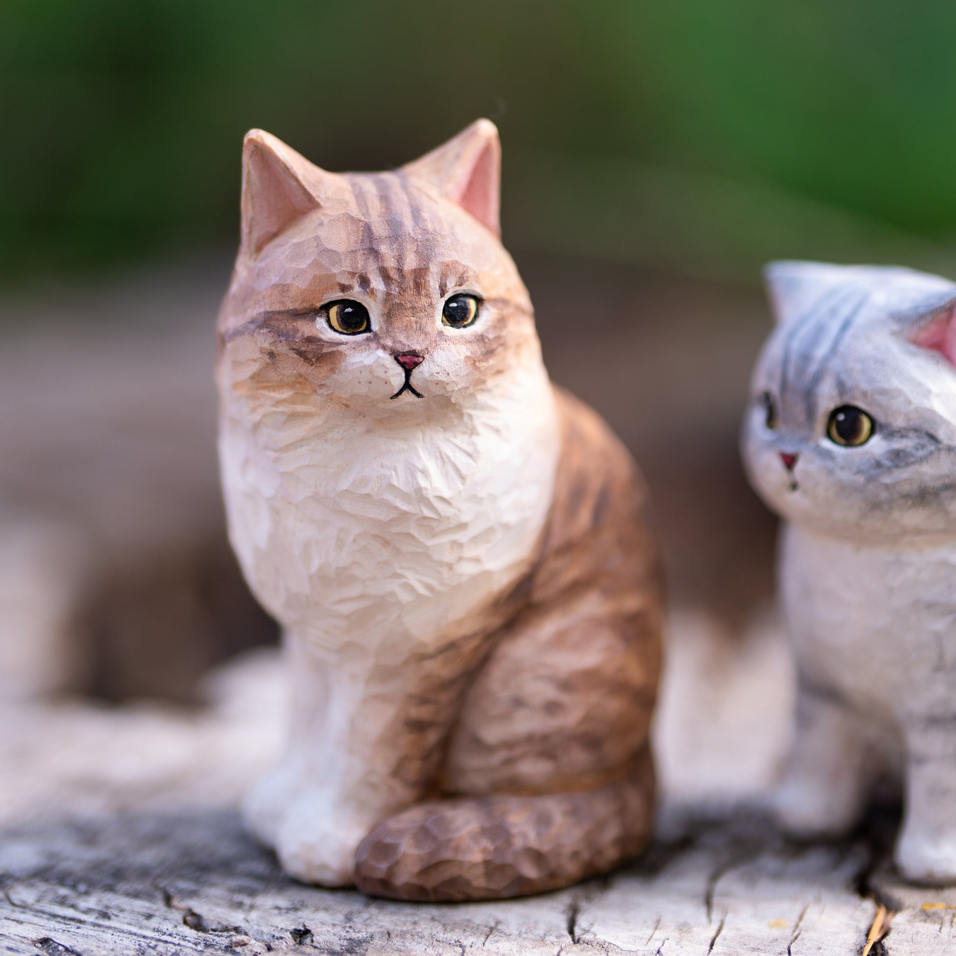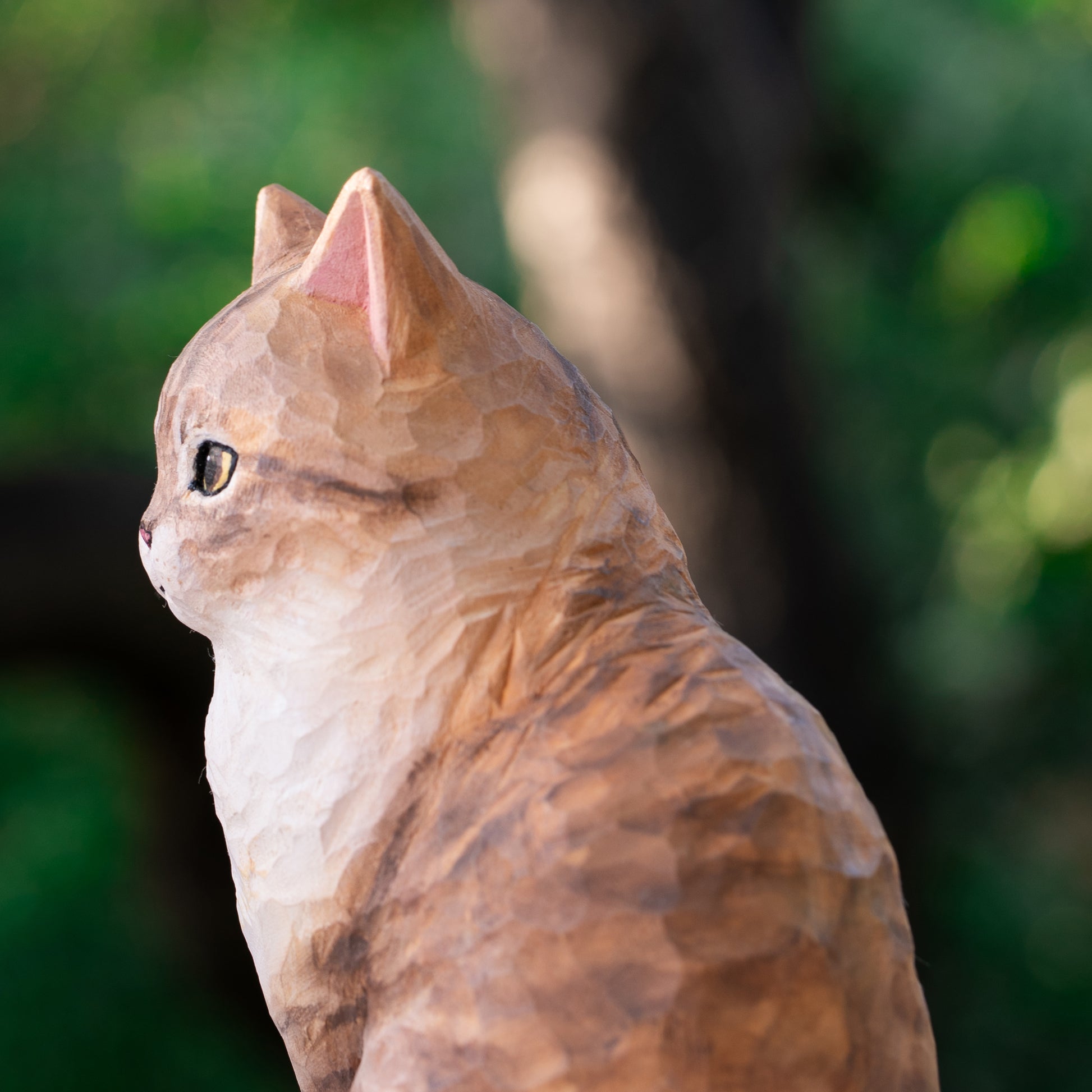 A lovingly carved wooden cat, full of gentle charm. Sitting quietly with its fluffy tail wrapped around its body, it tilts its head ever so slightly - as if catching your gaze with soft curiosity. A little guardian of calm moments, always by your side.